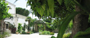 I grandi esemplari di palme al centro della ''piazzetta'' , glicini, lavande, agrumi, melograni, bouganvillee e cespugli di rose nane paesaggistiche restituiscono atmosfere eleganti e romantiche. E' un giardino conviviale: immaginato come una piccola ed elegante piazzetta di paese, dove godersi una bevanda all'ombra dei glicini nelle giornate assolate e chiaccherare, degustando una pietanza tipicamente mediterranea, tra gli splendidi agrumi e le profumate lavande.